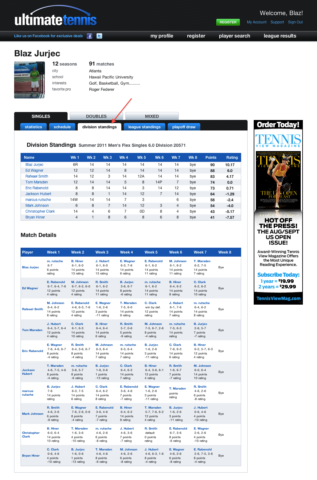 If you're new to Ultimate Tennis the screen shots below will show you how to navigate the site to get the most out of your league experience.